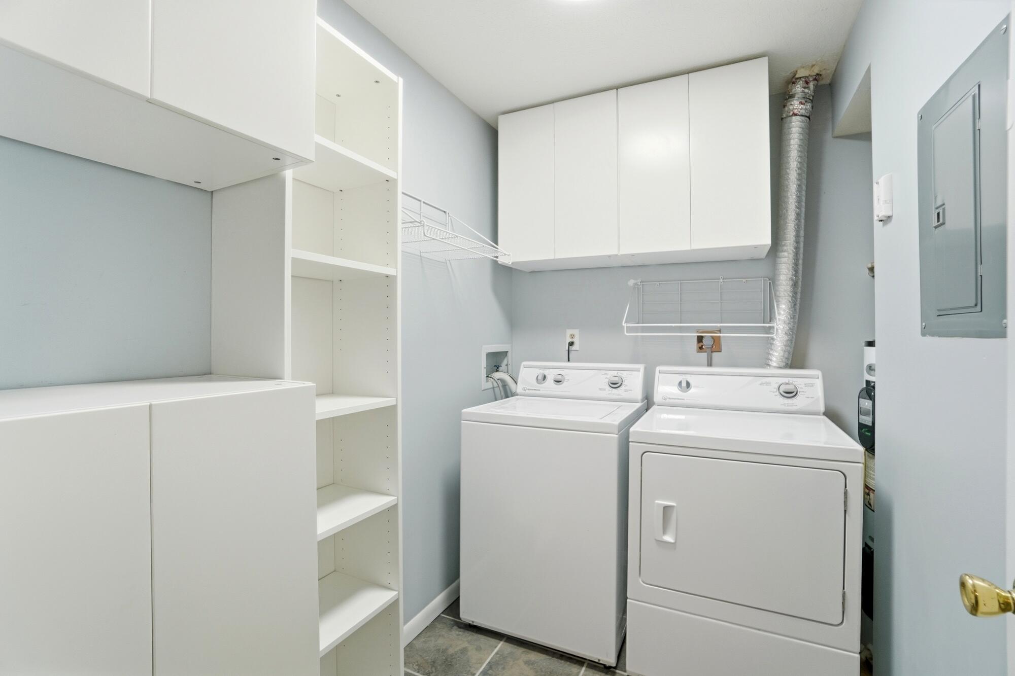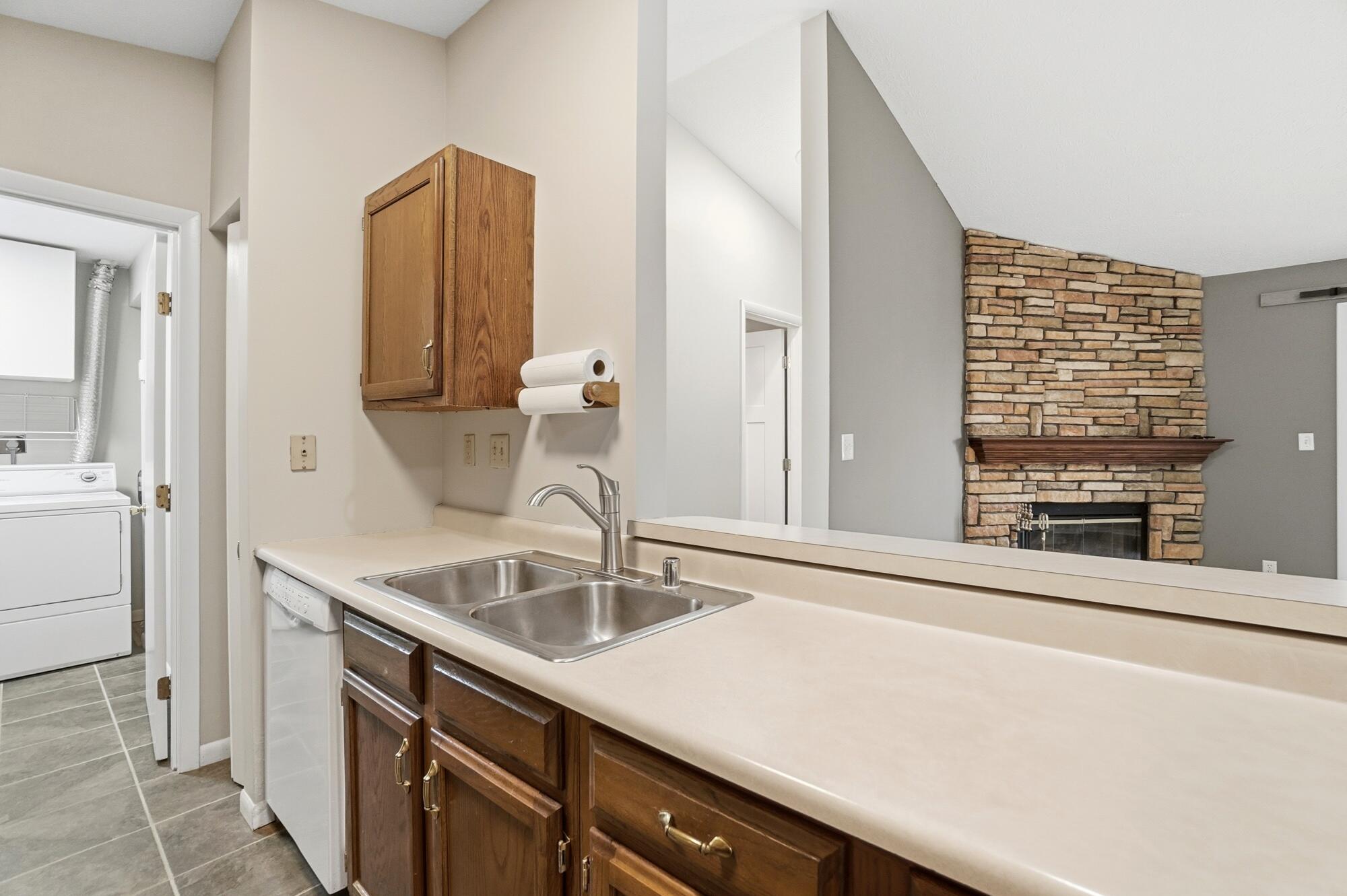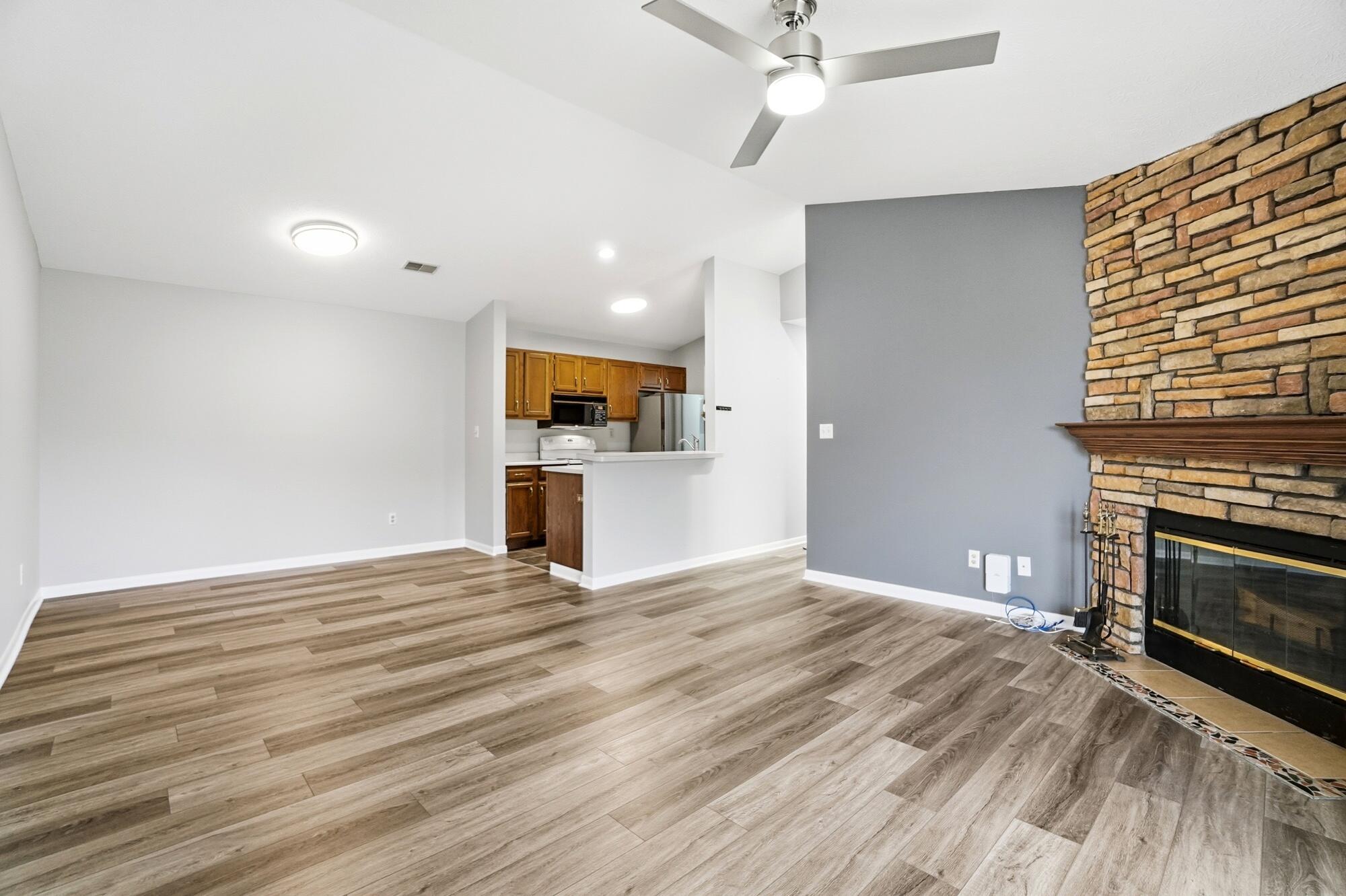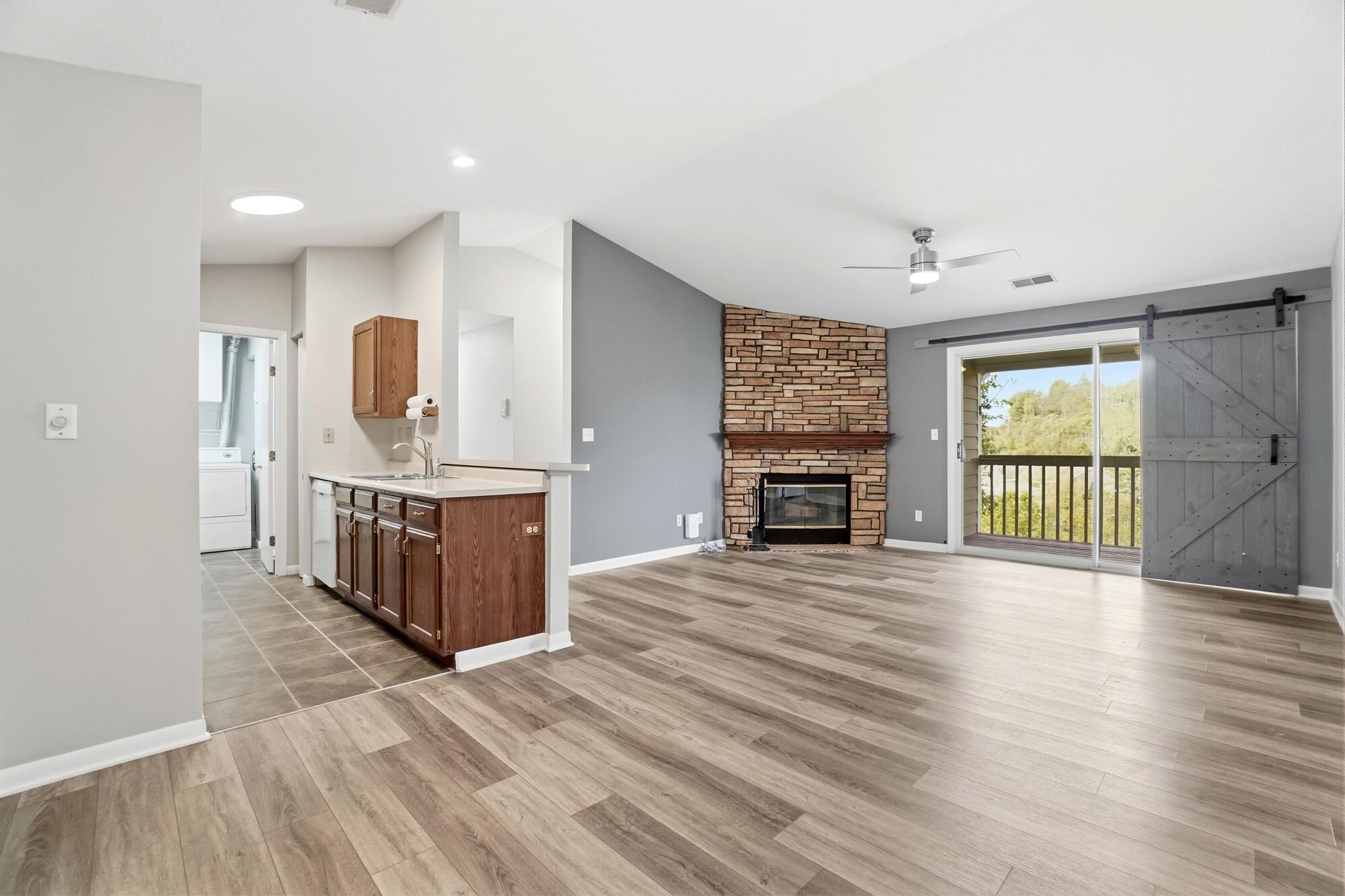 Step inside to an open-concept layout with vaulted ceilings, creating an airy, spacious feel throughout. You'll love the updated flooring, fresh paint, and cozy fireplace that make the home warm and inviting. The kitchen comes fully equipped with all appliances, while both bathrooms have been tastefully renovated with modern finishes that elevate the entire home. Each bedroom offers a true walk-in closet, providing generous storage and everyday functionality. The in-unit washer and dryer add daily convenience.