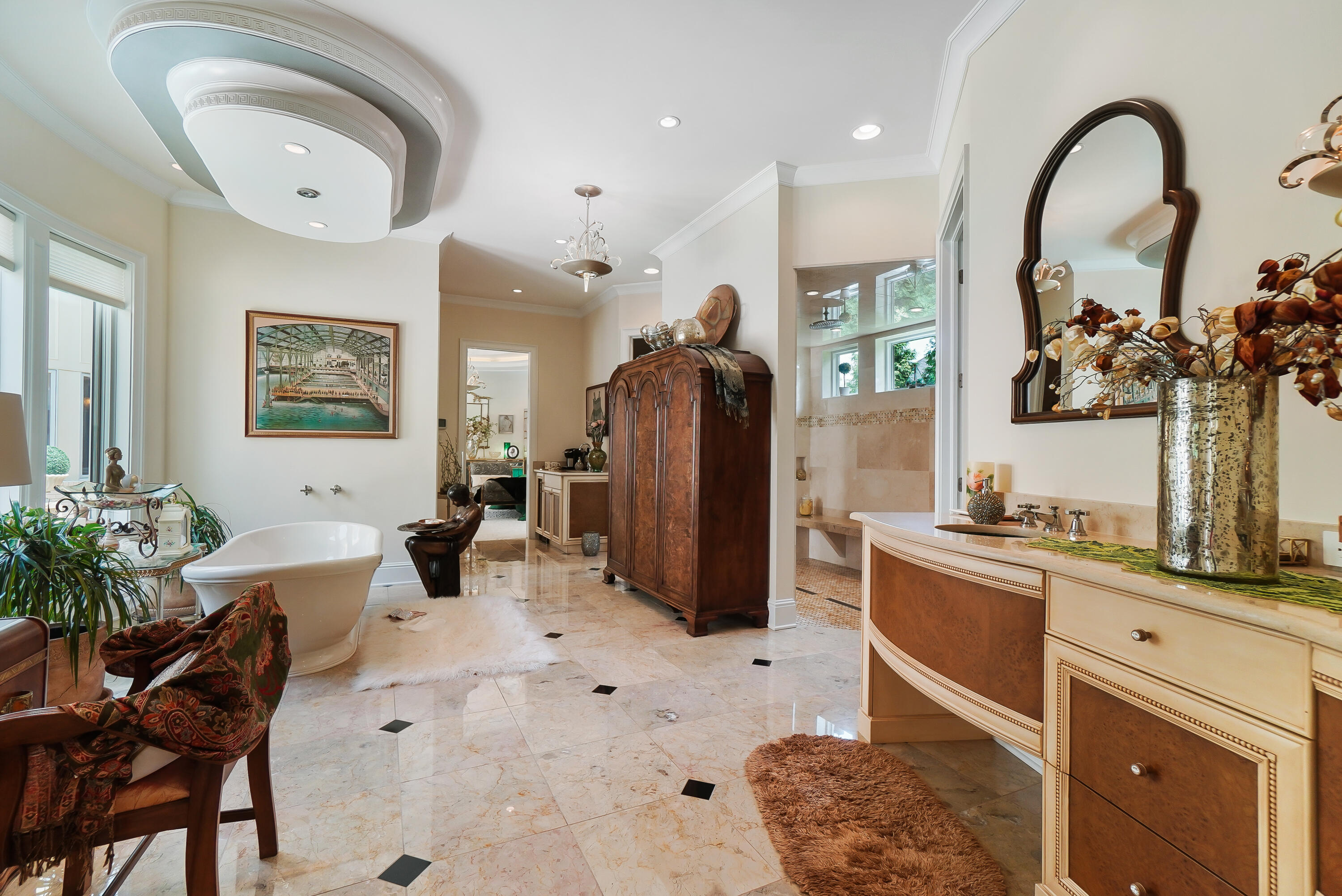 | Other Interior Features | Pocket Door(s), Kitchen Island, Wet Bar, Walk-In Closet(s), Tray Ceiling(s), Storage, Stone Counters, Sound System, Soaking Tub, Smart Thermostat, Smart Home, Pantry, Open Floorplan, High Speed Internet, Entrance Foyer, Double Vanity, Crown Molding, Coffered Ceiling(s), Chandelier, Bookcases, Breakfast Bar, Built-in Features, Beamed Ceilings, Butlers Pantry, Ceiling Fan(s), Elevator, High Ceilings, Multi Panel Doors, Recess Ceiling(s), Recessed Lighting, Wired for Data, Wired for Sound |